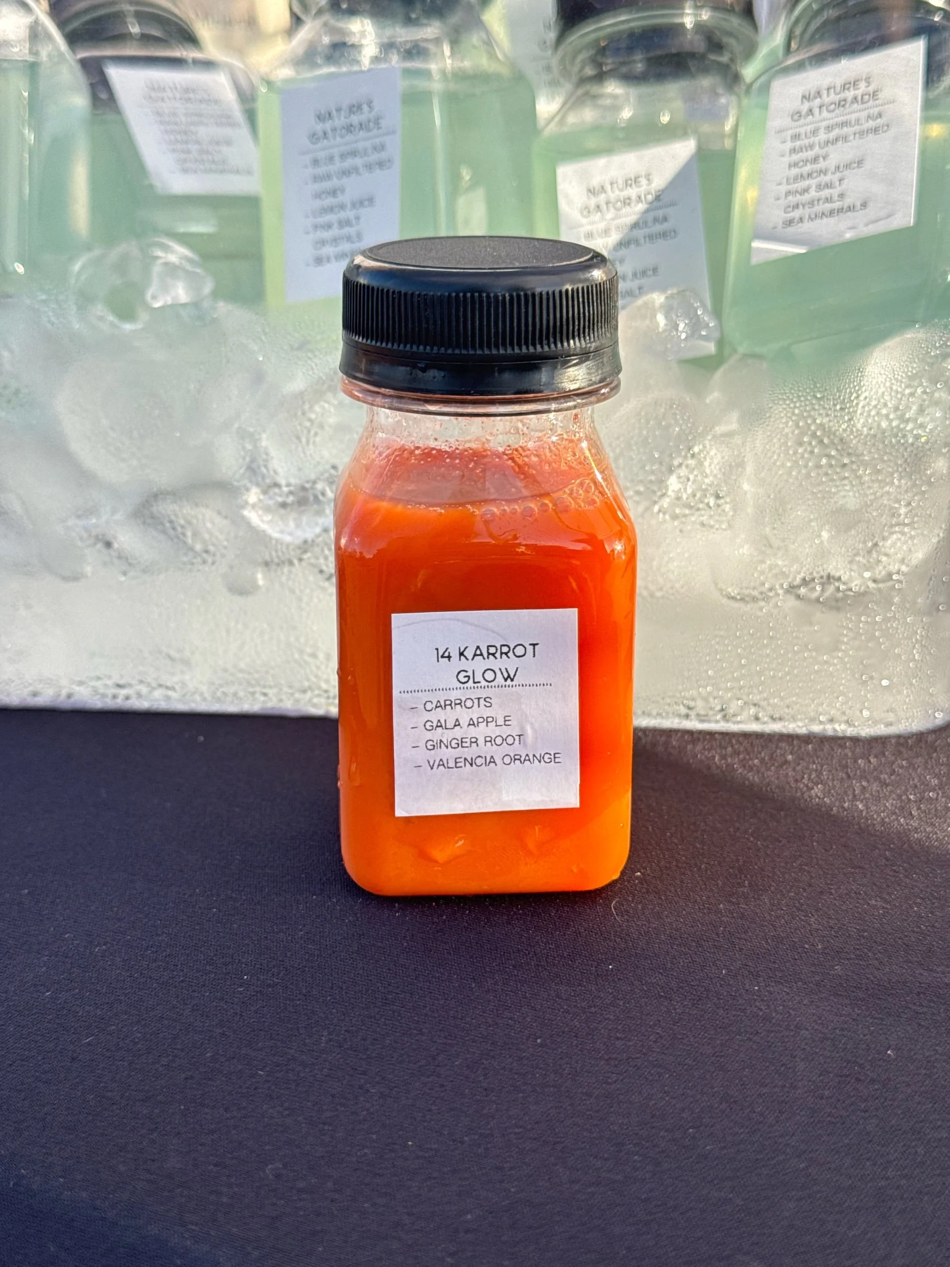 NATURE'S 'GATORADE' $15.00 GALA VERDE $18.00 14 DAY CLEANSE $125.00 14 KARROT GLOW $15.00 THE BURNER $18.00 MAGNESIUM SLEEP GUMMIES - 48ct $25.00 HAPPY DAYS - 6ct $12.00 FLU BOMB $15.00 PAPAYARROT - 16oz $15.00 ADD-ON - PAPAYA SEEDS $1.50 ORGANIC CHILDREN'S VAPOR RUB - 2oz $15.00 PURPLE RAIN - 16oz $32.00 ABERNATHY'S OINTMENT - CALENDULA HEALING SALVE $15.00 MAGNESIUM SLEEP GUMMIES - 24ct $15.00 CUSTOM JUICE ORDER - 16oz $20.00